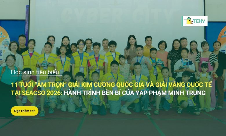 Với lộ trình luyện thi công nghệ tại Teky, học viên Yap Phạm Minh Trung đã từng bước biến niềm yêu thích lập trình thành thành tích đáng tự hào: giải Kim Cương quốc gia, giải Vàng quốc tế của kỳ thi SEACSO 2026 (Southeast Asia Computer Science Olympiad – Kỳ thi Olympic Khoa học Máy tính Đông Nam Á).