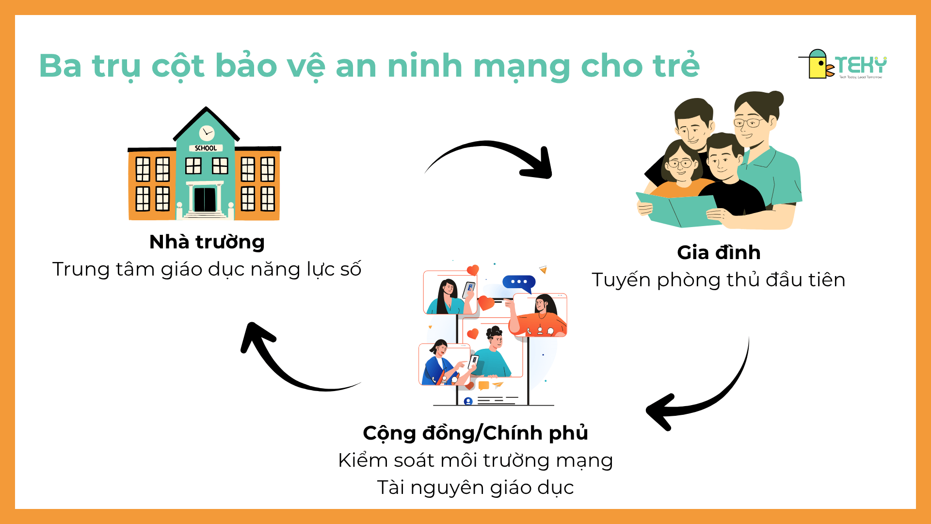 Để trả lời câu hỏi trên, cần phân tích mô hình phân bổ trách nhiệm bảo vệ trẻ em trong không gian số. Theo lý thuyết, đây là mô hình “Ba Trụ Cột” (G-S-C) đòi hỏi sự phối hợp chặt chẽ của Gia đình, Nhà trường và Cộng đồng/Chính phủ.