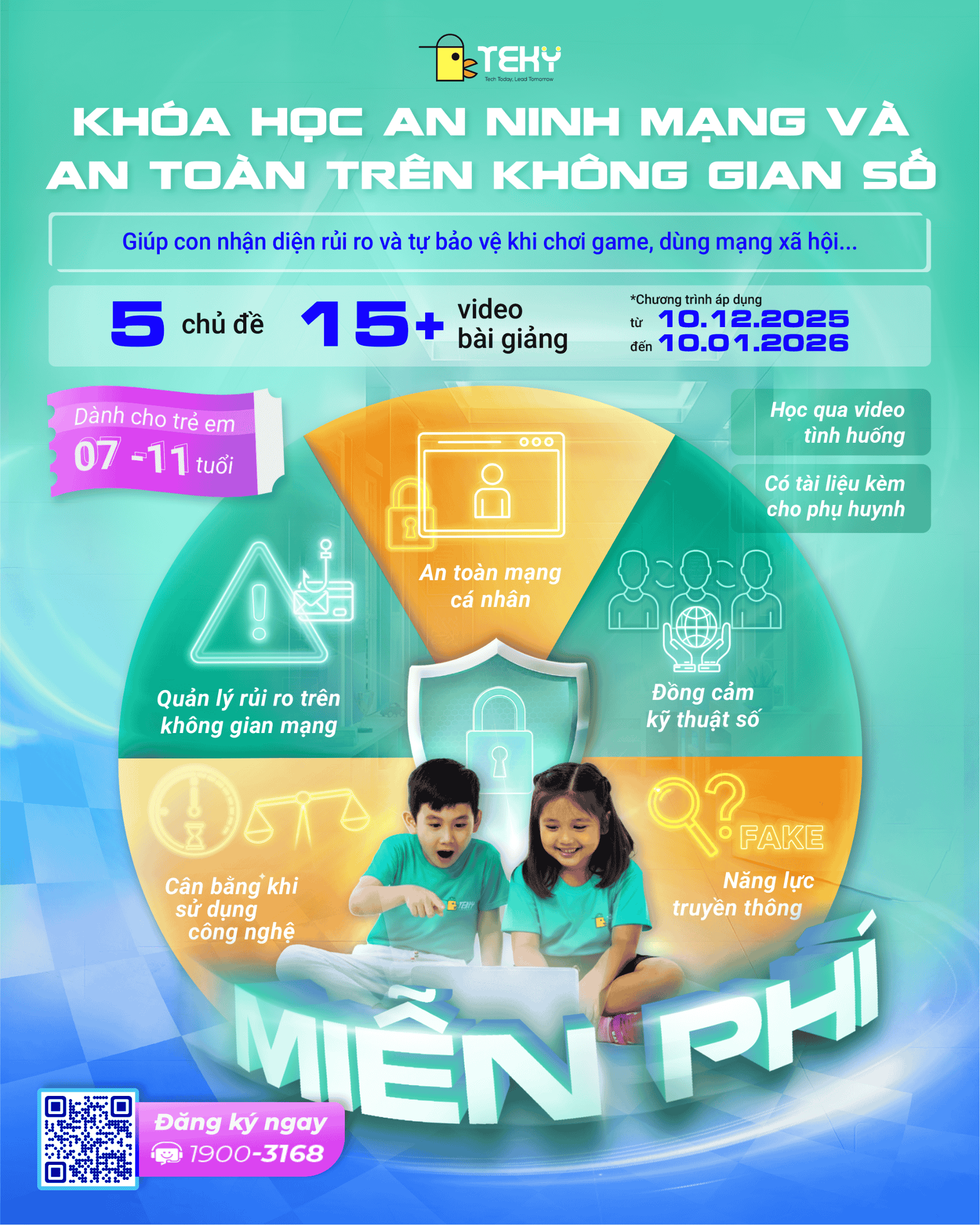 - Hình thành tư duy tự chủ: Đây là mục tiêu cao nhất. Trẻ em học cách bảo vệ tài sản quý giá nhất của mình: dữ liệu cá nhân và thời gian. Thông điệp cốt lõi là: “Học cách dùng công nghệ, không để bị công nghệ dùng.”