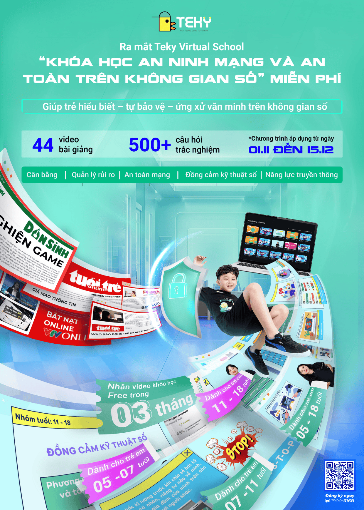 Teky đã chính thức khởi động dự án “Cyber Safety for Kids”. Dự án triển khai hai khóa học trực tuyến hoàn toàn miễn phí, được thiết kế chuyên biệt về “An ninh mạng & An toàn trên Không gian số”, nhắm đến hai nhóm tuổi vàng (7-11 tuổi và 11-18 tuổi).