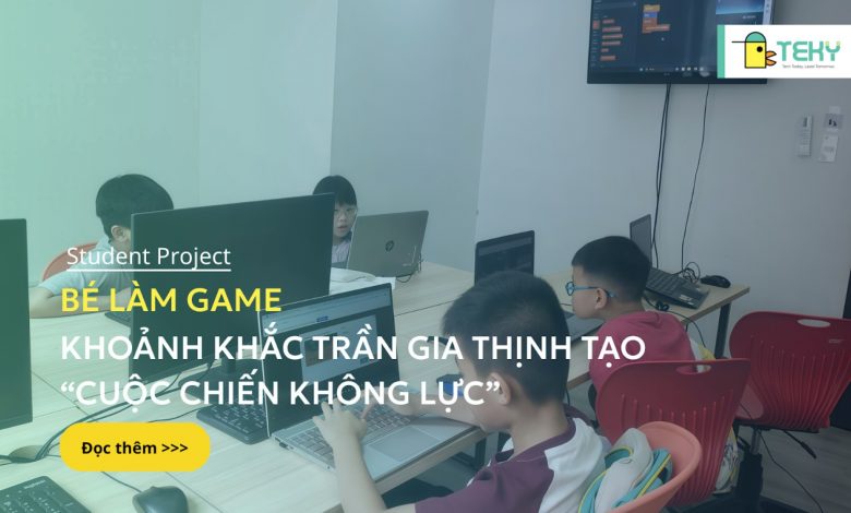 Với Gia Thịnh, bé làm game là hành trình kéo dài qua nhiều buổi học, nơi em từng bước hoàn thiện trò chơi “Cuộc chiến không lực” từ những ý tưởng ban đầu.
