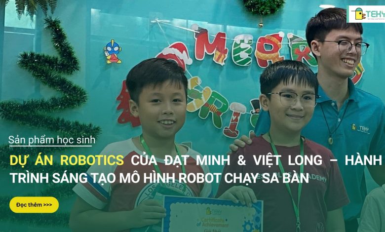 Được phát triển trong khóa học Khám phá Robotics, dự án của Đạt Minh và Việt Long là kết quả của quá trình học đi đôi với hành, từ việc tìm hiểu cơ khí, cảm biến đến lập trình điều khiển robot. Thông qua việc trực tiếp tham gia thi đấu và hoàn thiện sản phẩm thực tế, hai học sinh đã vận dụng trọn vẹn kiến thức đã học, đúng với tinh thần “Học thật – Làm thật – Thi thật” mà Teky theo đuổi trong lộ trình đào tạo công dân số tương lai.