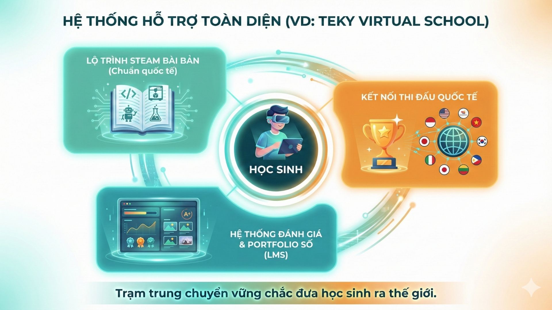 Trong lộ trình đầy thử thách này, phụ huynh khó có thể tự định hướng cho con nếu thiếu một đơn vị chuyên môn. Một môi trường giáo dục công nghệ chuẩn mực đóng vai trò như một “trạm trung chuyển” đưa học sinh ra thế giới.
