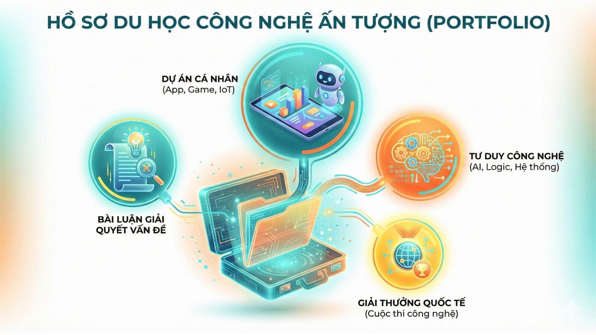 Thực tế tại các quốc gia có nền giáo dục tiên tiến như Mỹ, Canada hay Singapore cho thấy, các trường đại học danh tiếng không còn xét duyệt hồ sơ dựa chủ yếu vào điểm số lý thuyết. Họ quan tâm đến “quá trình hình thành tư duy” của học sinh. Một khoảng trống phổ biến của học sinh Việt Nam hiện nay là dù có năng lực ngoại ngữ tốt và học lực giỏi, nhưng lại hoàn toàn “trắng” về minh chứng năng lực công nghệ thực tiễn trong hồ sơ (Portfolio).