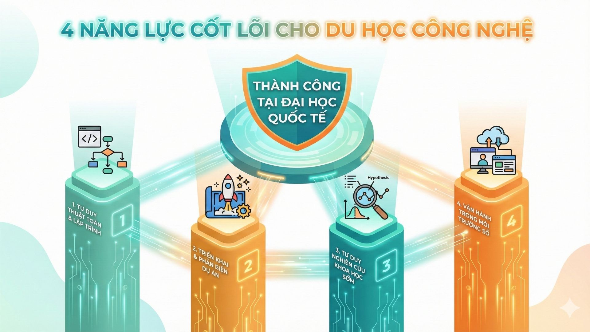 Du học trong thời đại số không còn là cuộc đua về tài chính hay điểm số ngoại ngữ thuần túy. Đó là cuộc đua về năng lực thích nghi và tư duy công nghệ. Một hồ sơ du học ngành công nghệ ấn tượng phải là kết quả của một quá trình rèn luyện STEAM, AI và lập trình một cách nghiêm túc ngay từ bậc phổ thông.