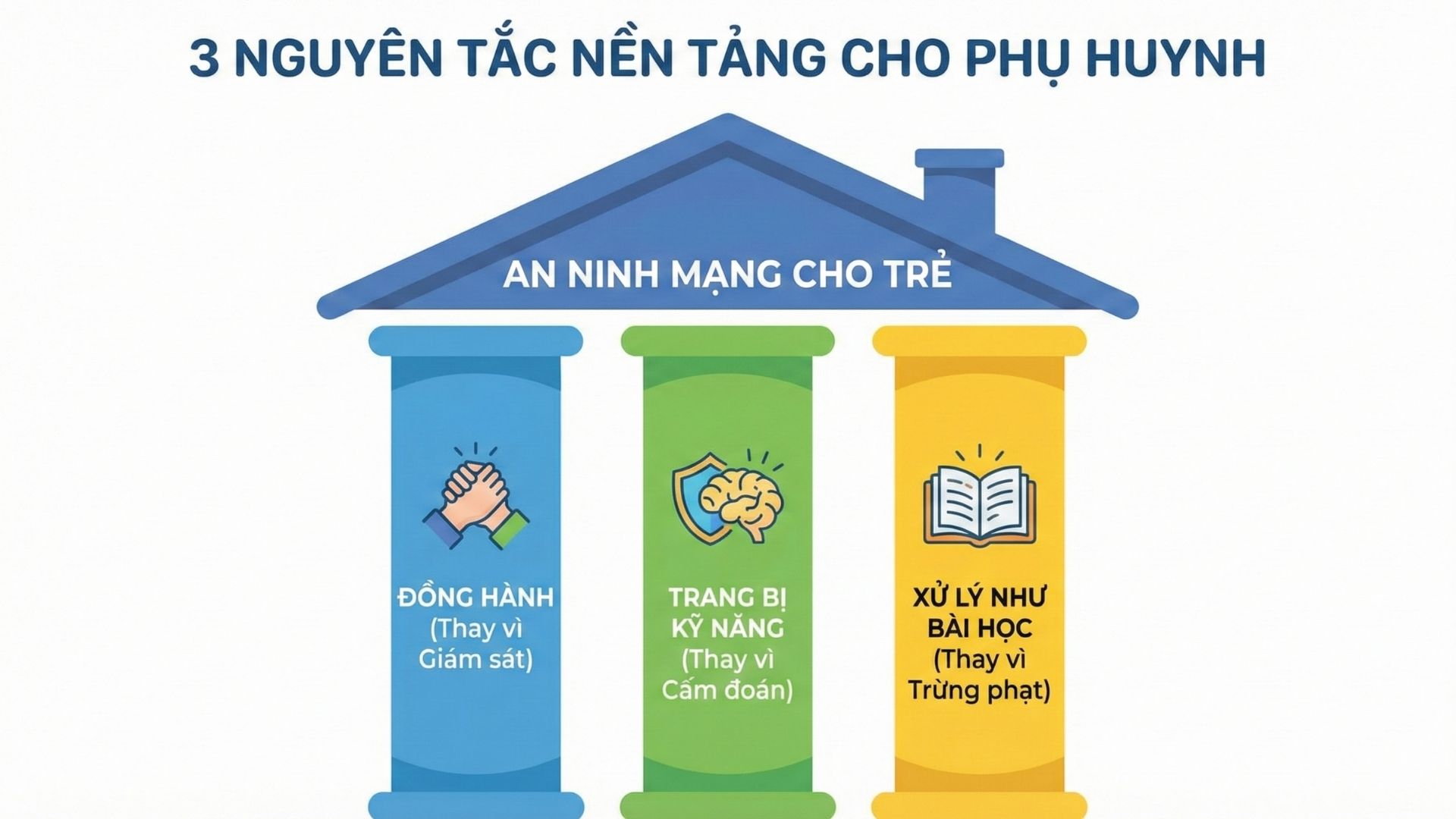 Khi phụ huynh nắm vững khung tư duy và quy trình xử lý như đã trình bày, nỗi sợ hãi sẽ nhường chỗ cho sự tự tin. Mục tiêu của chúng ta không phải là tạo ra một môi trường vô trùng, mà là nuôi dưỡng những đứa trẻ có “hệ miễn dịch số” khỏe mạnh – biết nhận diện nguy cơ, biết xử lý tình huống và biết tìm kiếm sự giúp đỡ.