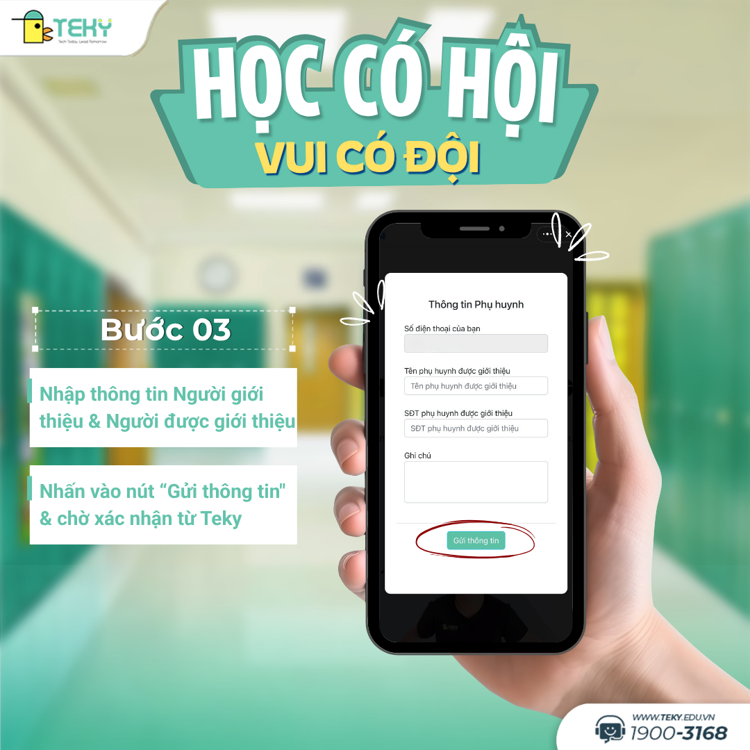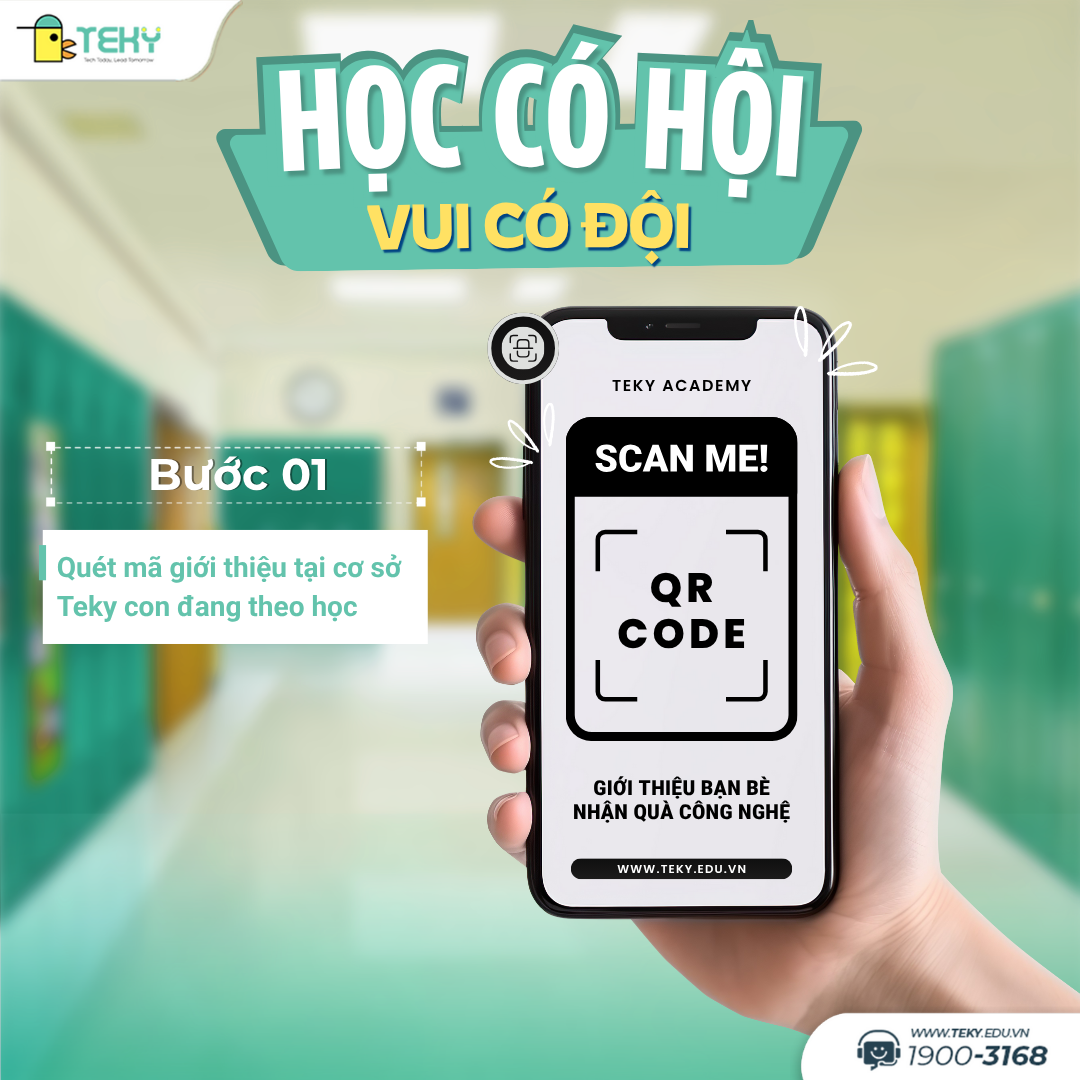 Đây là hoạt động tri ân cộng đồng học viên của Teky, khuyến khích phụ huynh giới thiệu bạn bè để con được học trong môi trường công nghệ – nơi mỗi buổi học đều tràn đầy cảm hứng.