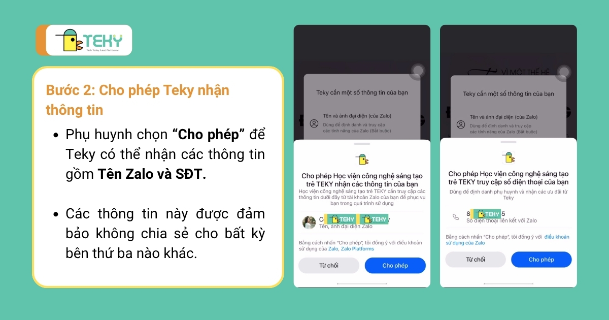 - Chia sẻ SĐT và tên Zalo: Giúp TEKY liên hệ đặt lịch hẹn đánh giá và ghi nhận đóng góp của giáo viên.