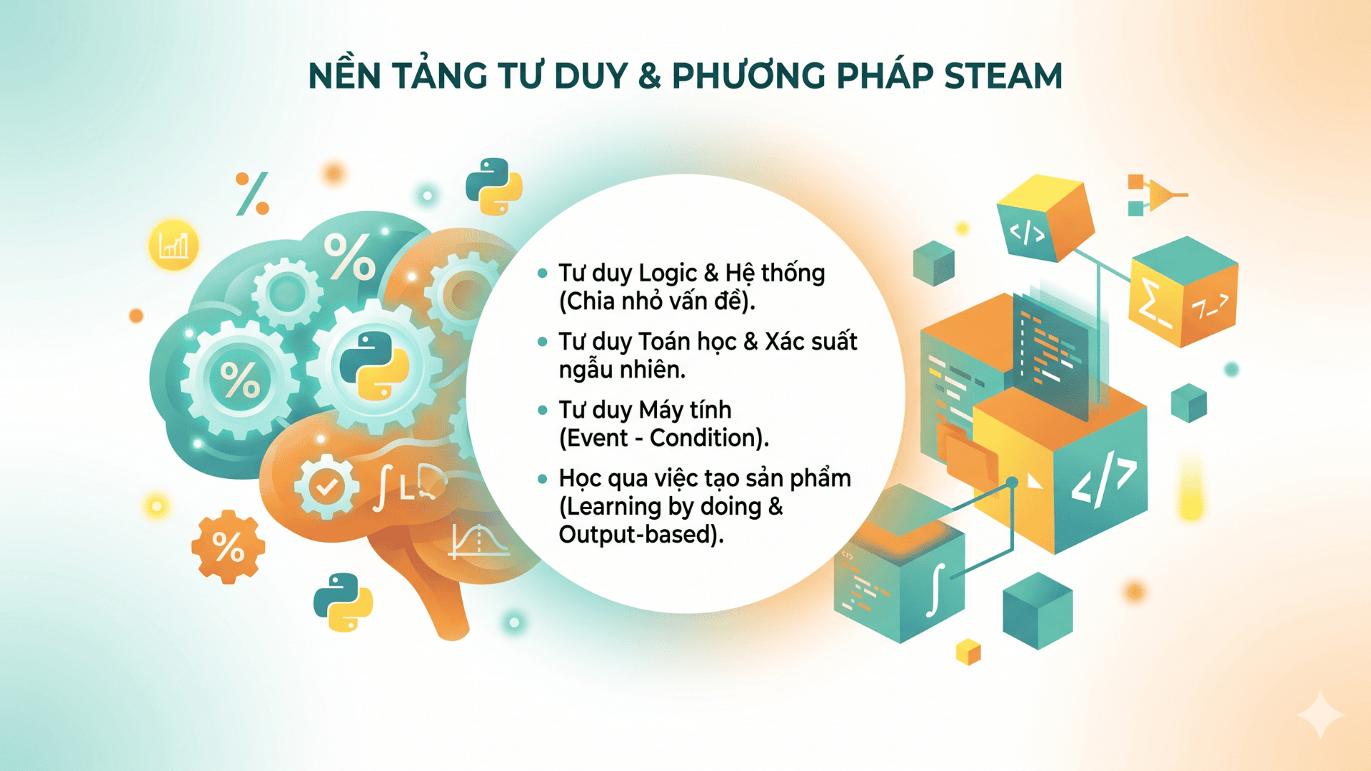 Sản phẩm học sinh này là minh chứng rõ rệt cho phương pháp giáo dục STEAM. Trẻ không học Toán, Tin học hay Logic một cách tách rời. Thay vào đó, em dùng kỹ năng lập trình (Technology) kết hợp với thuật toán và xác suất (Math) để giải quyết một bài toán cụ thể.