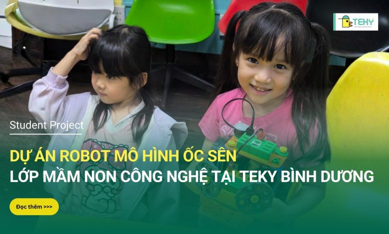 Một trong những dự án nổi bật của lớp Mầm non công nghệ Level 2 tại Teky Bình Dương vừa qua là “Mô hình ốc sên” – sản phẩm báo cáo cuối khóa của hai học viên Trần Nguyễn Bảo Ngọc và La Bích Quân.
