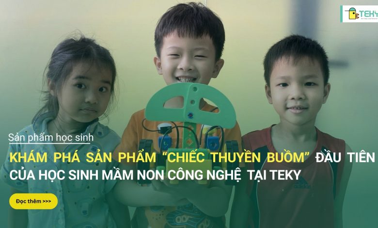 Một trong những sản phẩm nổi bật tại Teky Điện Biên Phủ vừa qua là Chiếc thuyền buồm do ba bạn nhỏ Võ Ngọc An Nhiên, Nguyễn Thiên An và Nguyễn Minh Phúc cùng thực hiện. Dự án thể hiện cách trẻ mầm non học công nghệ một cách tự nhiên, trực quan và đầy hứng thú. “Chiếc thuyền buồm” trở thành dấu ấn cho thấy trẻ hoàn toàn có thể làm quen với cơ khí – vận động – tư duy kỹ thuật từ những bước đầu tiên.