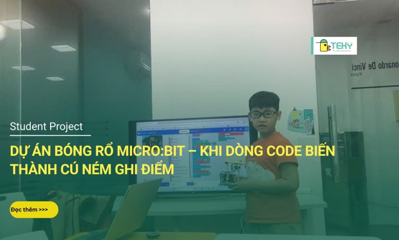 Trong số các dự án cuối khóa nổi bật tại Teky Cầu Giấy, Dự án Bóng Rổ Microbit nổi bật nhờ tính trực quan và khả năng tương tác cao.