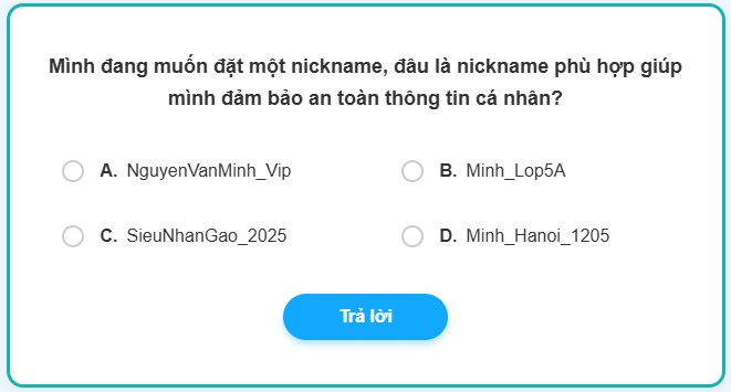 Nội dung: Chọn một nickname không làm lộ thông tin cá nhân.