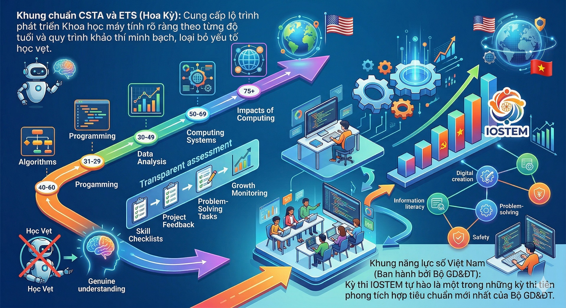 Khung chuẩn CSTA và ETS (Hoa Kỳ): Cung cấp lộ trình phát triển Khoa học máy tính rõ ràng theo từng độ tuổi và quy trình khảo thí minh bạch, loại bỏ yếu tố học vẹt.