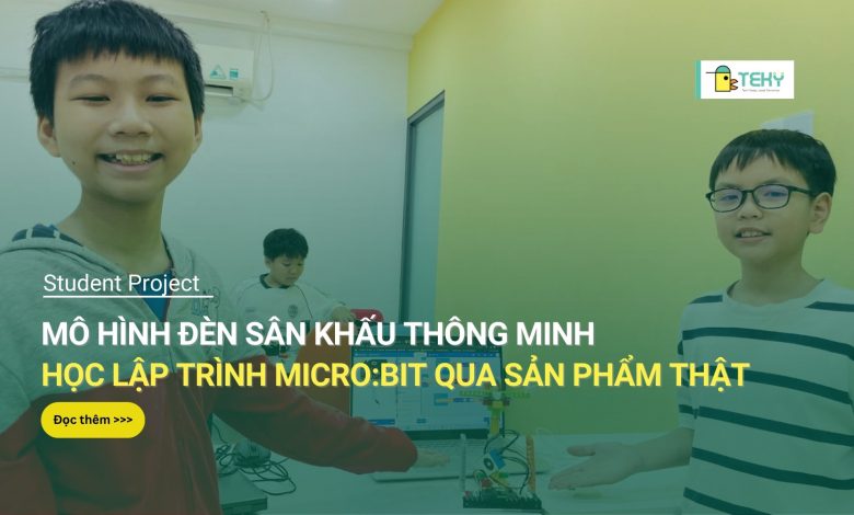 Một trong những dự án tiêu biểu là mô hình “Đèn sân khấu thông minh” của hai bạn nhỏ Thiện Nhân và Phúc An – minh chứng cho việc trẻ hoàn toàn có thể làm chủ lập trình và cảm biến từ những bước đầu tiên.