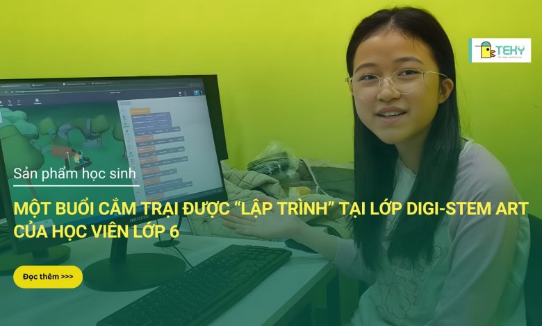 Dự án “buổi cắm trại” của học viên Trần Ngọc Thảo Linh (lớp 6) là một ví dụ điển hình khi em sử dụng công nghệ để xây dựng bối cảnh, nhân vật và câu chuyện tương tác. Thông qua môn học Digi – STEM Art, lập trình không còn là công cụ kỹ thuật, mà trở thành phương tiện để kể chuyện và sáng tạo.