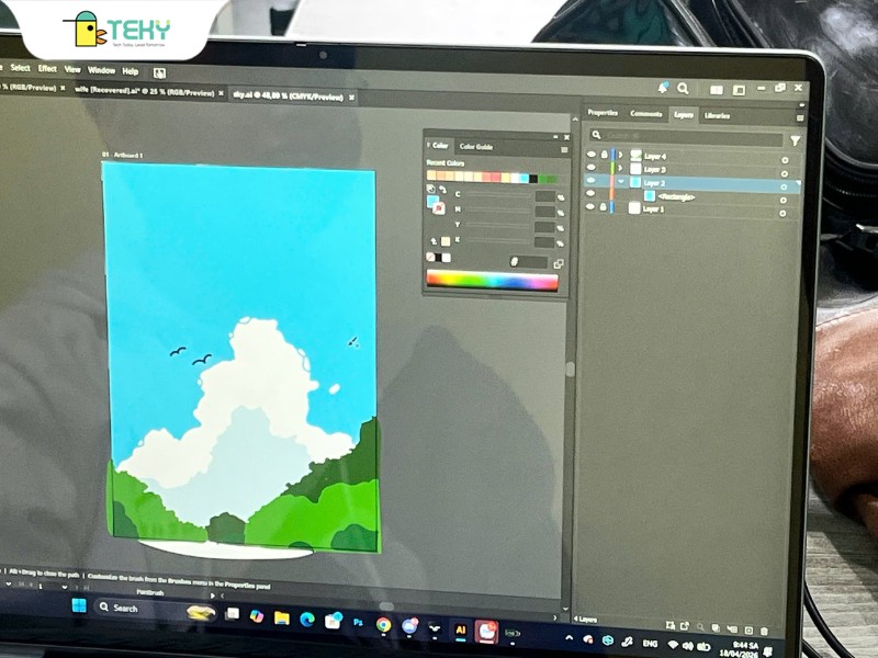 Nguyên đã học tại Teky khoảng một năm. Khi nhắc lại thời gian đầu, bạn chỉ cười: “Lúc mới học thấy phần nào cũng khó.” Không phải chỉ một bài, mà gần như mọi thứ đều mới. Từ việc làm quen với phần mềm, hiểu cách hoạt động của từng công cụ, đến việc sắp xếp bố cục sao cho hợp lý. Có những bước tưởng chừng đơn giản nhưng lại phải làm đi làm lại nhiều lần.