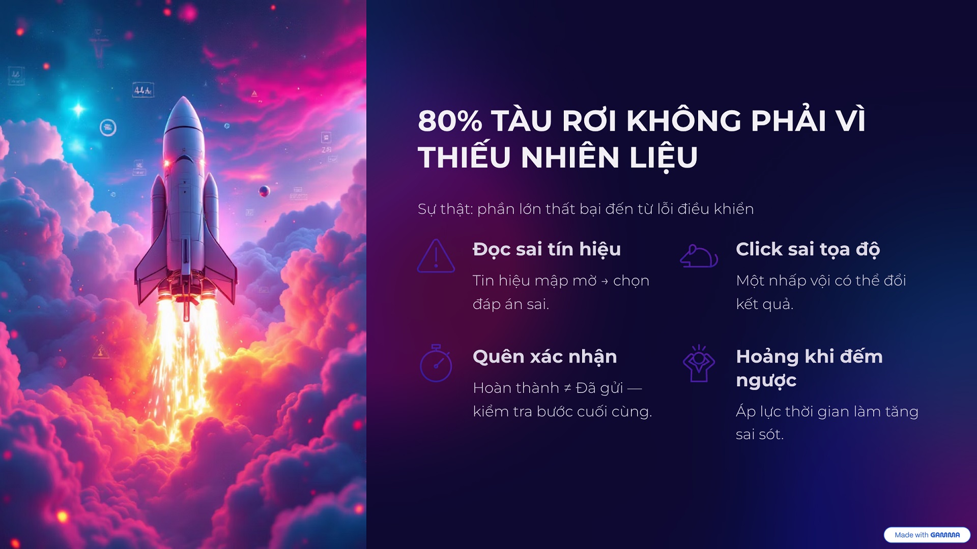 Thầy Hùng đã tiết lộ một sự thật bất ngờ: 80% các trường hợp “rơi tàu” (mất điểm) không phải vì các bạn thiếu kiến thức (nhiên liệu), mà phần lớn đến từ những lỗi điều khiển cực kỳ “lãng xẹt”! Cụ thể là 3 con “sâu” (bug) sau đây:
