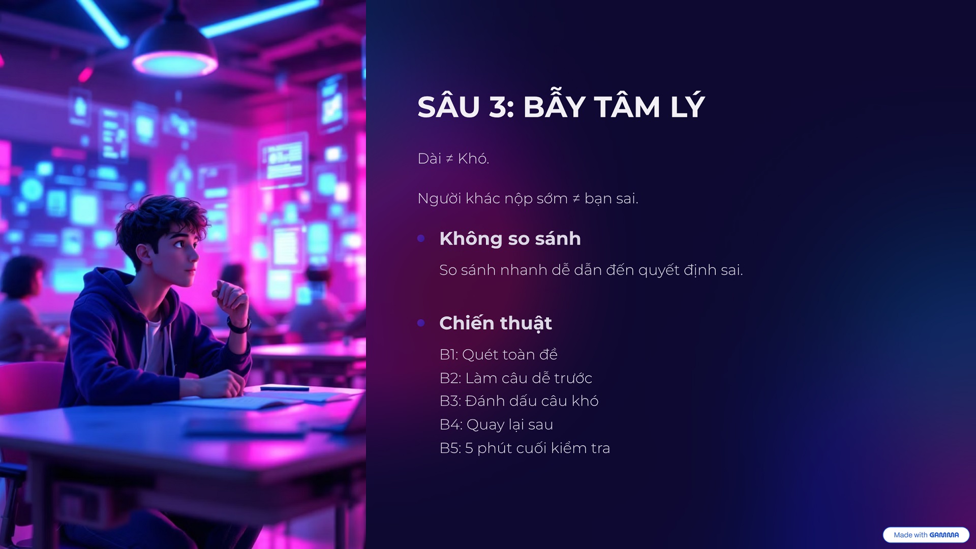 Sâu 3 – Bẫy tâm lý: Thấy đề dài là thấy khó, hoặc thấy đối thủ nộp bài sớm là hoảng loạn dẫn đến chọn bừa.
