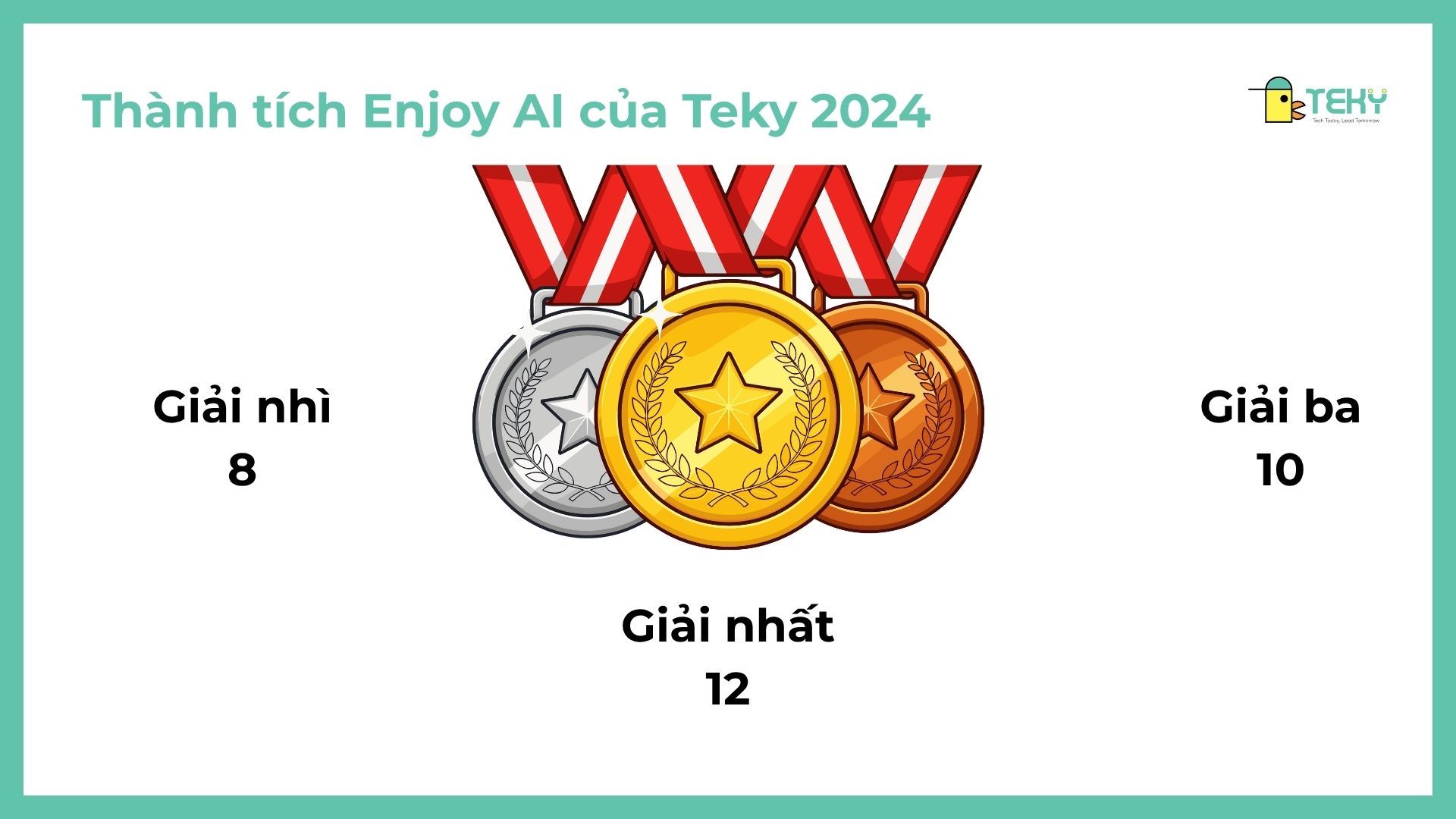 Số liệu thành tích của học sinh Teky tại Enjoy AI năm 2024 như sau: