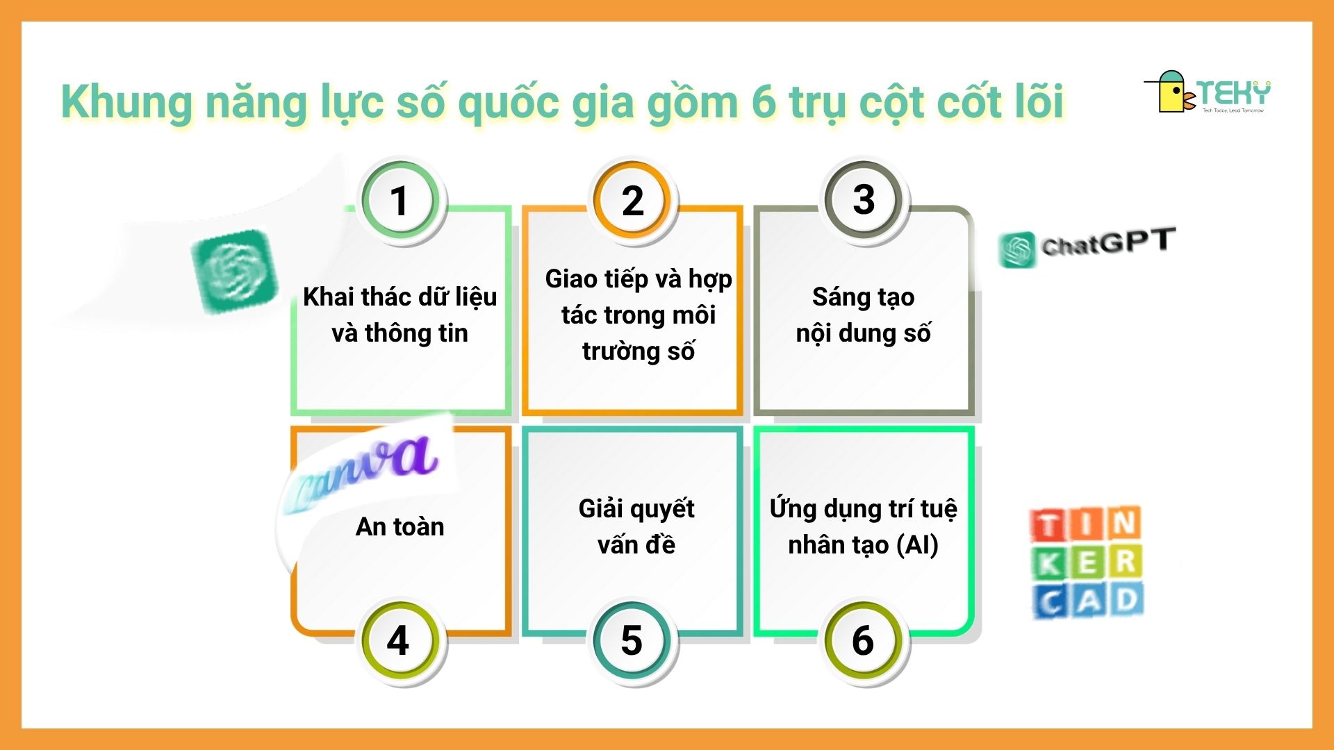 Tại Việt Nam, Bộ Giáo dục và Đào tạo đã chính thức ban hành Khung năng lực số Việt Nam 2025, xác định sáu miền năng lực số cho học sinh phổ thông, bao gồm: