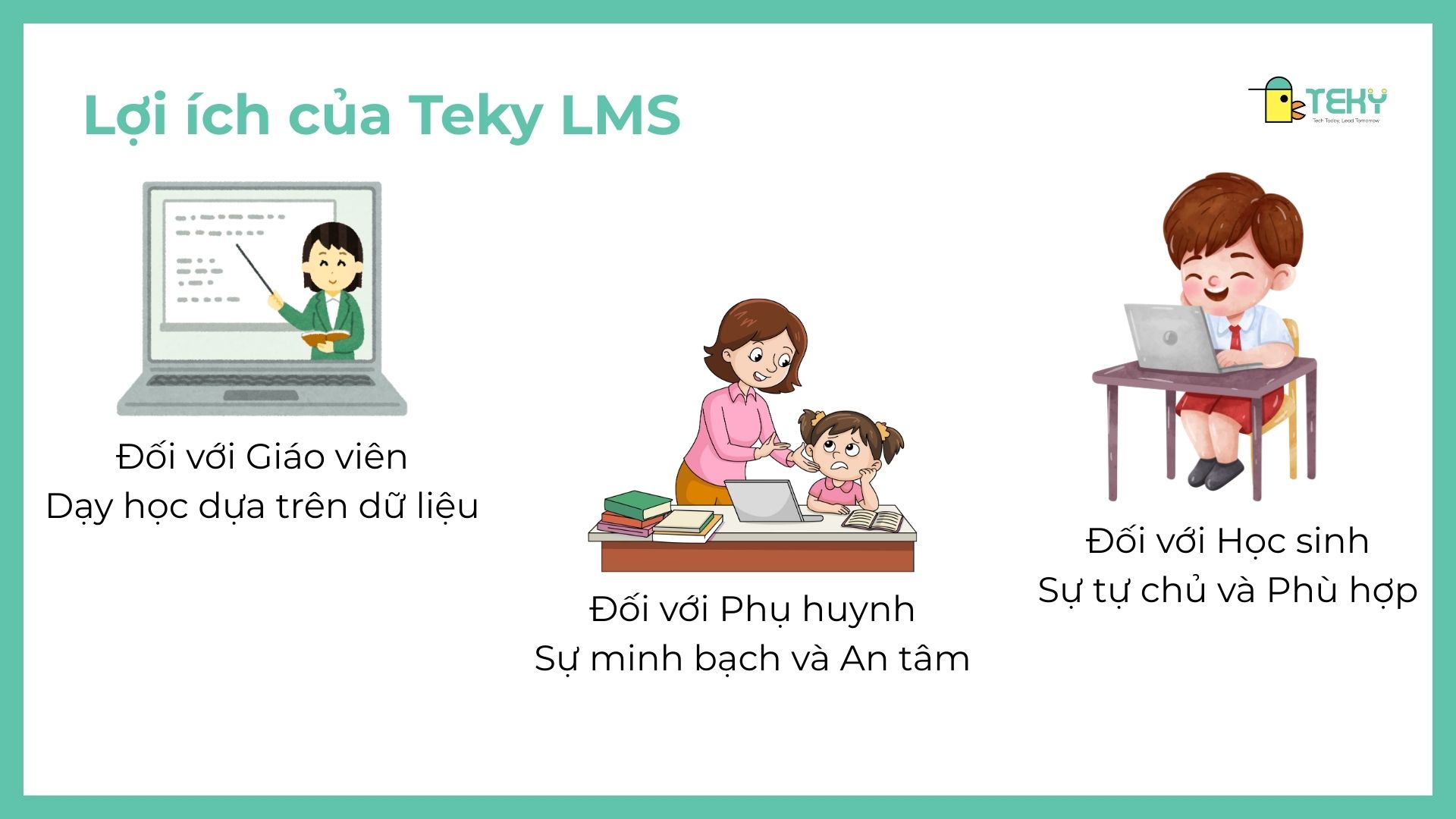Việc triển khai LMS trong mô hình trường học công nghệ online cho trẻ mang lại lợi ích đa chiều cho cả ba đối tượng.