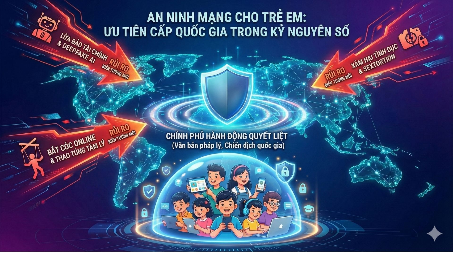 Trong thập kỷ qua, khái niệm “an toàn” đã mở rộng từ không gian vật lý sang không gian số. Trẻ em Việt Nam hiện là những “công dân số” từ sớm, đồng nghĩa với việc đối mặt với vô vàn rủi ro phi truyền thống mà thế hệ trước chưa từng gặp.