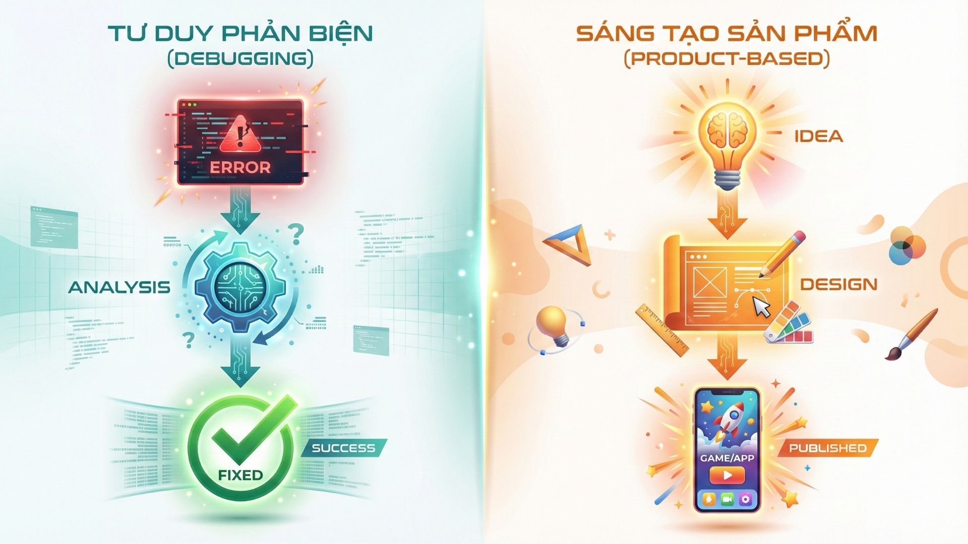 Trong lập trình, lỗi (bug) là điều tất yếu. Quá trình “Fix bug” chính là bài tập tư duy phản biện tốt nhất. Học sinh phải tự đặt câu hỏi: “Tại sao đoạn mã này không chạy?”, “Giả thuyết của mình sai ở đâu?”, “Có cách giải quyết nào tối ưu hơn không?”.
